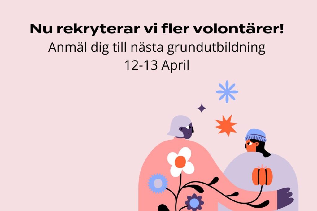 Vill du vara med oss och göra skillnad? Nu rekryterar vi nya volontärer till vår chatt och syskonskap! Anmäl dig till nästa grundutbildning 12-13 April.